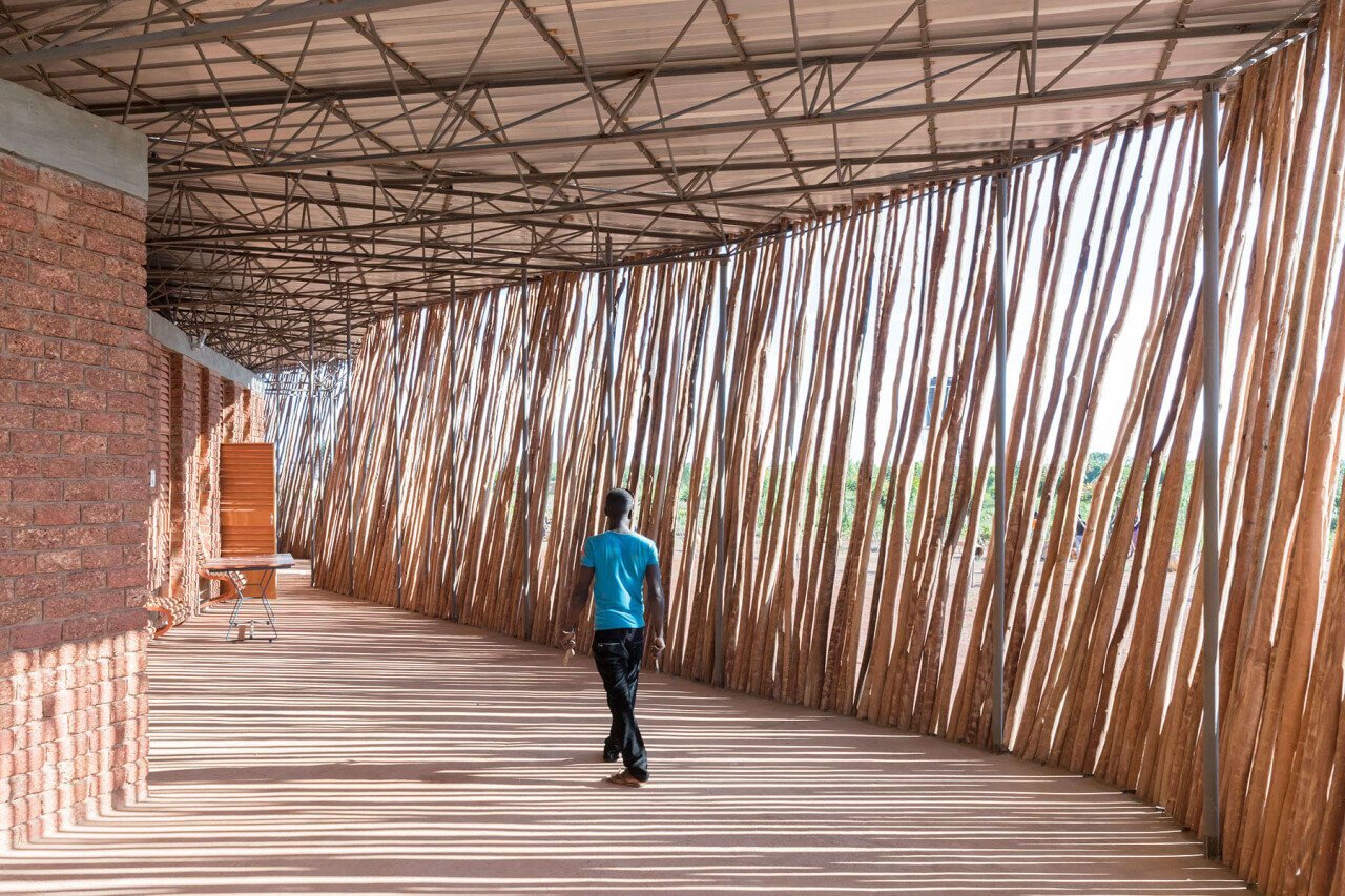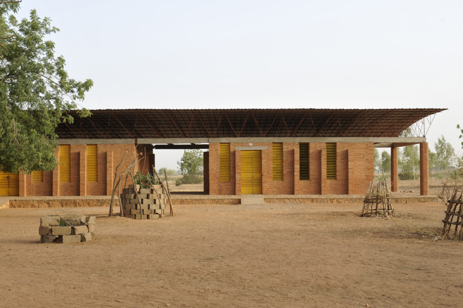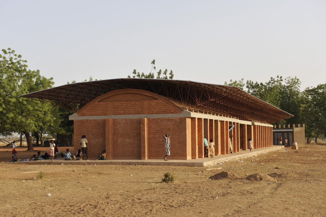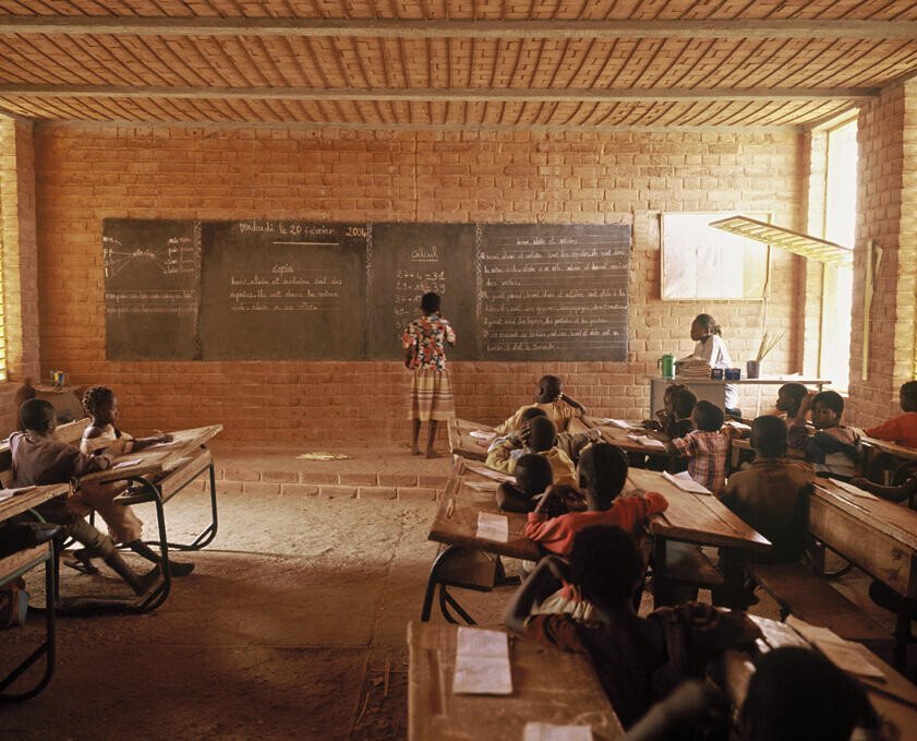 부르키나파소의 ‘간도 초등학교’는 극한의 더위와 열악한 조명에 대응할 수 있는 설계를 필요로 했다. 그의 해답은 토착 점토를 활용한 시멘트 강화 벽돌과 높이 들어 올린 지붕이었다. 두 요소를 통해 건물은 공조시설 없이도 내외부 환기와 온도 유지가 가능했다. 프로젝트가 성공적으로 마무리되면서 학교의 학생 수는 120명에서 700명으로 늘었고, 이후 교사 주택(2004), 본관 증축(2008), 도서관(2019) 등으로 학교는 점차 확장됐다.