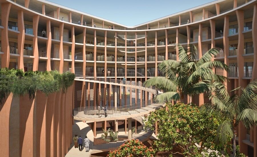 - 아프리카 건축의 현대적 재해석과 지붕을 통해 물을 가운데로 모음으로써 물부족과 기후변화에 대한 메시지를 던짐