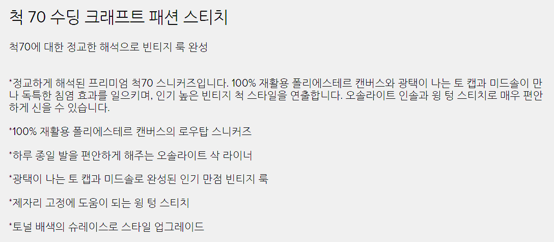 - 컨버스공홈 : 척 70 수딩 크래프트 구매 바로가기 <95,000원 (정상가)>