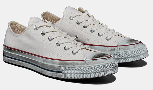 척 70 파치먼트 빈티지(제품명 : '척 70 수딩 크래프트 스티치 에그렛')는 기존의 척 70 파치먼트에 사용감 워싱을 추가한 제품입니다. 전체적으로 면이 있는 부분은 깨끗하고, 밑에 고무 부분만 균형감 있게 워싱이 추가되어서 굉장히 자연스럽고 예뻤습니다.