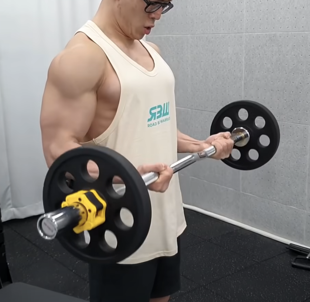 - 이두 : EZ바 컬(2세트 웜업 & 8-10회 상대적으로 무거운 무게로 진행)
