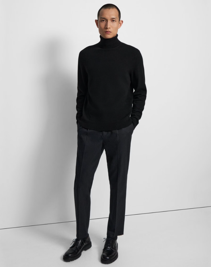 A classic turtleneck accented with ribbed trim, this long sleeve style is knit with ultra-soft, luxurious cashmere. Whether you layer it under a button-up or wear it solo with a winter coat, this wardrobe always looks polished.